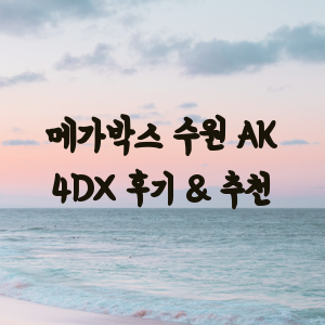 이번 후기를 통해 메가박스 수원 AK플라자 4DX 상영관에 대한 정보와 관람 팁을 얻으셨나요? 앞으로 영화관 선택과 좌석 예매 시 도움이 되었길 바랍니다. 다음에는 어떤 영화를 4DX로 관람해보고 싶으신가요?